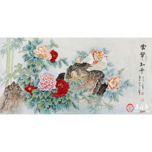 包邮 名家字画国画牡丹王一容手绘工笔花鸟画真迹客厅办公室装 饰画