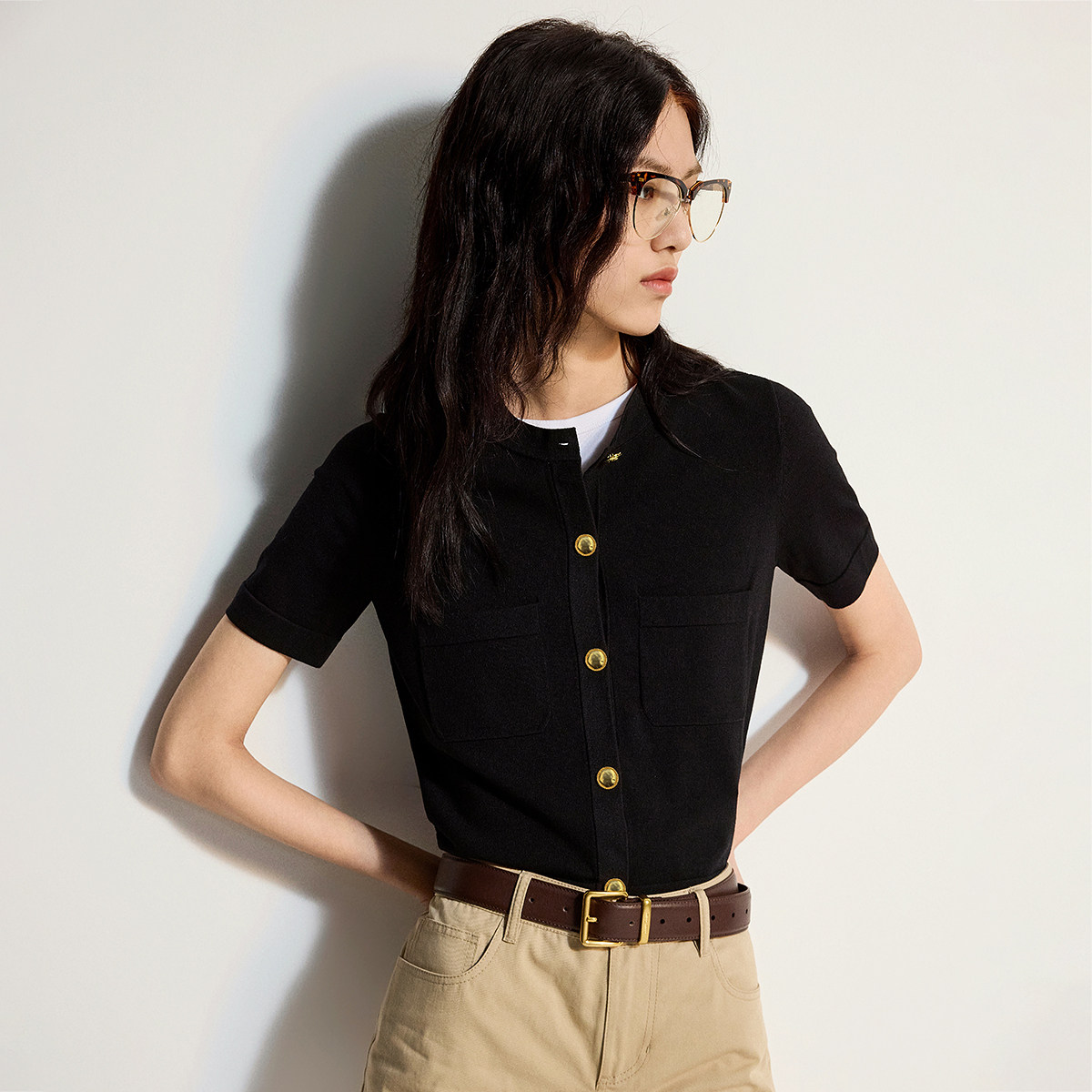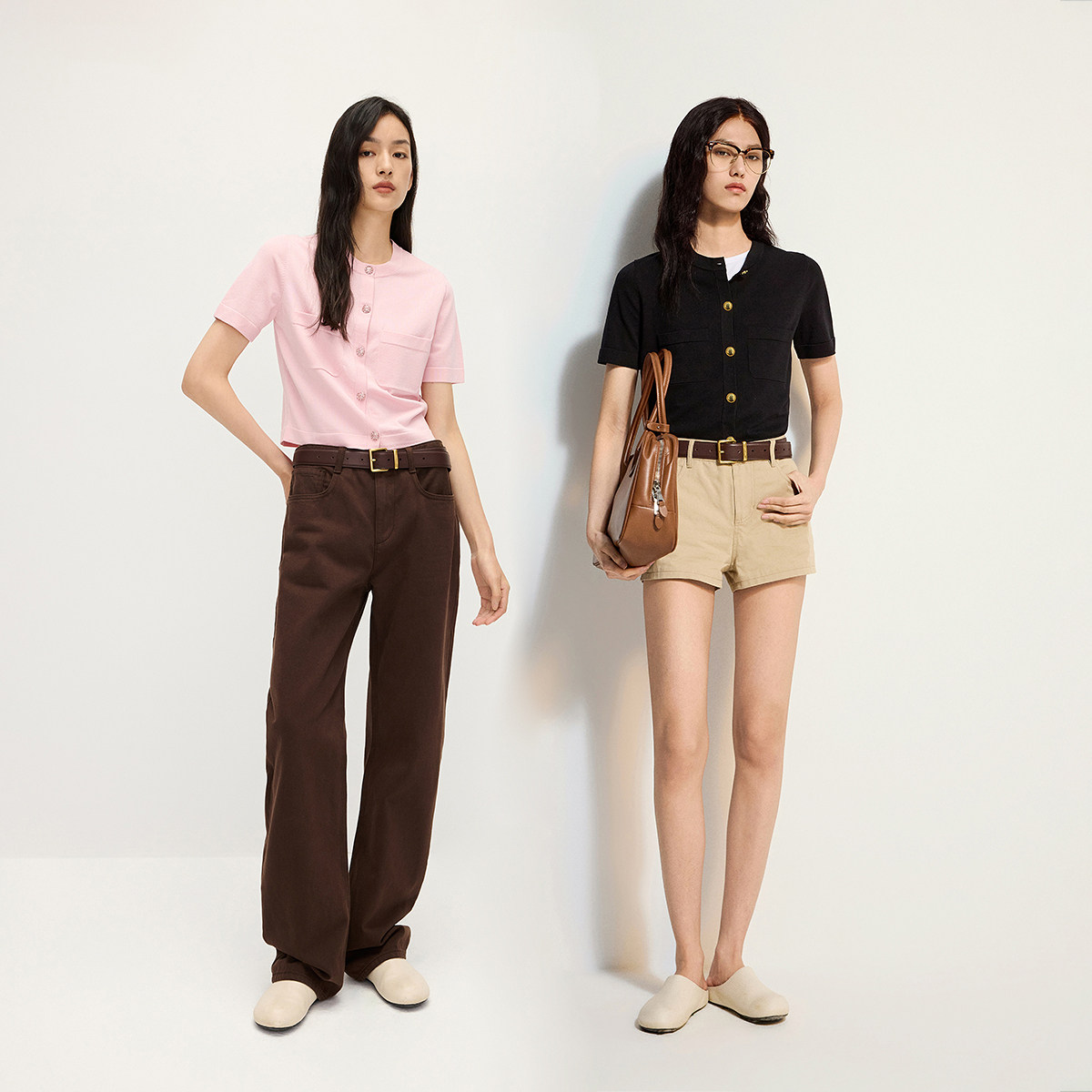 女上衣内搭感夏季 针织衫 冰爽丝小香风短袖 OCHIRLY欧时力