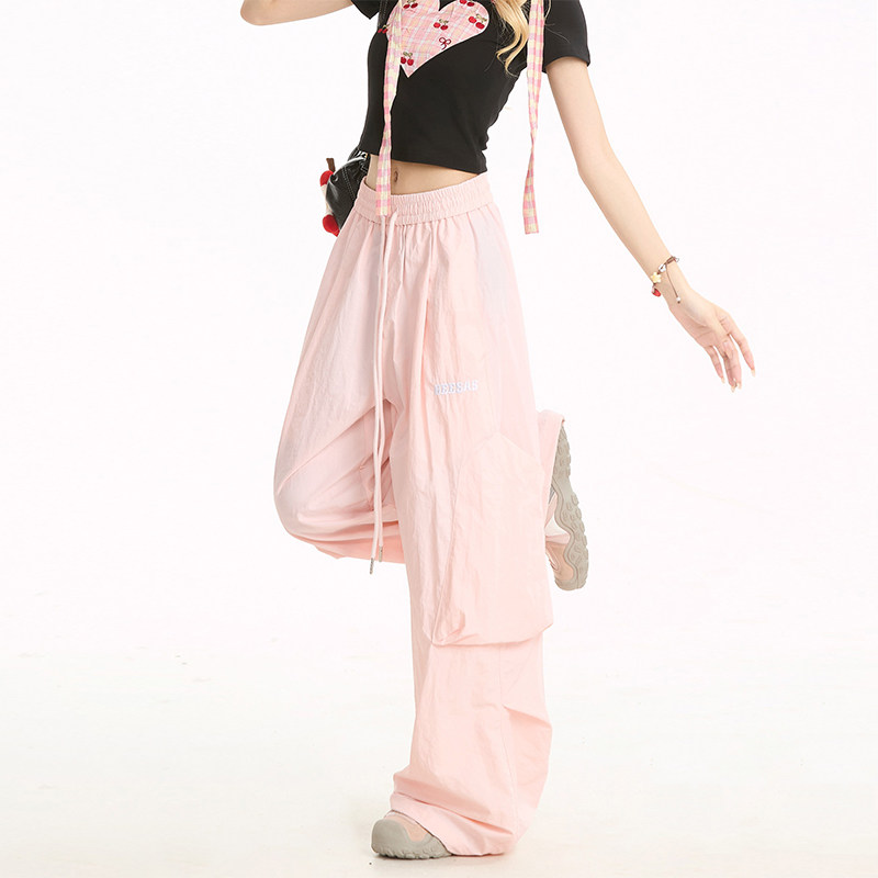 子宽松百搭伞兵裤 NERESUM夏日多巴胺工装 字母刺绣休闲裤 女美式 裤