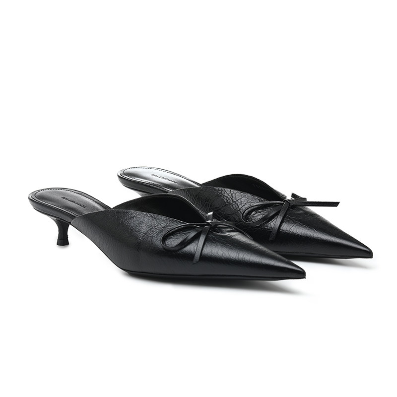 巴黎世家纯色羊皮革女士细跟凉拖鞋 Balenciaga 中跟鞋 自营