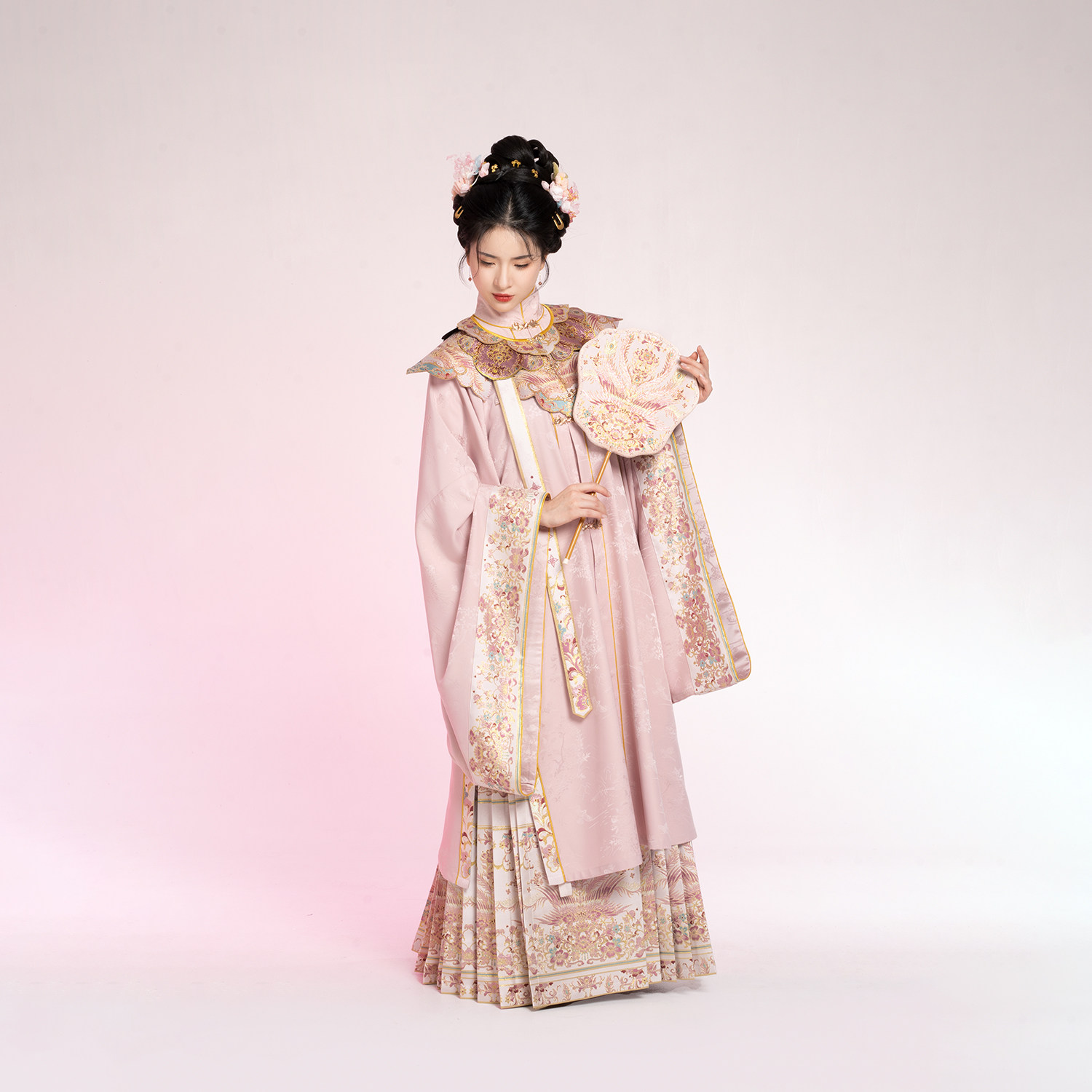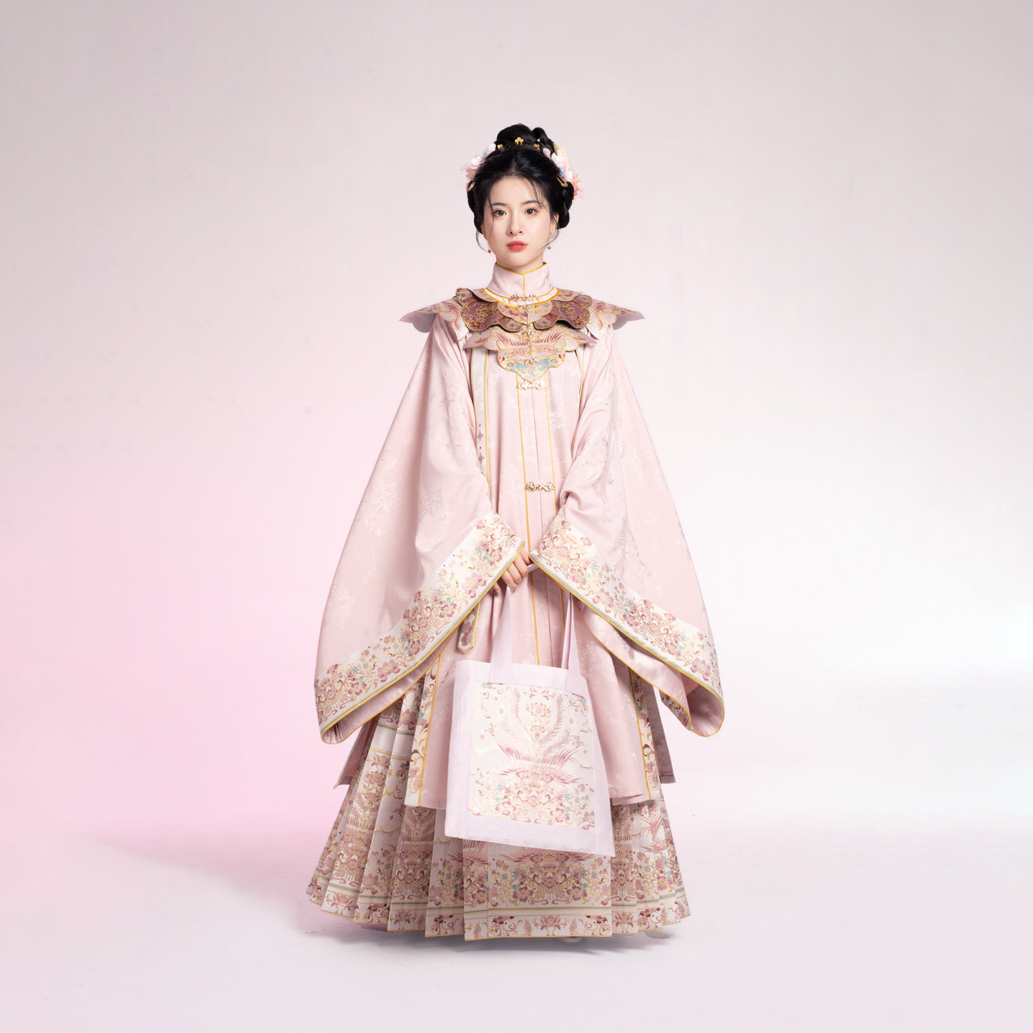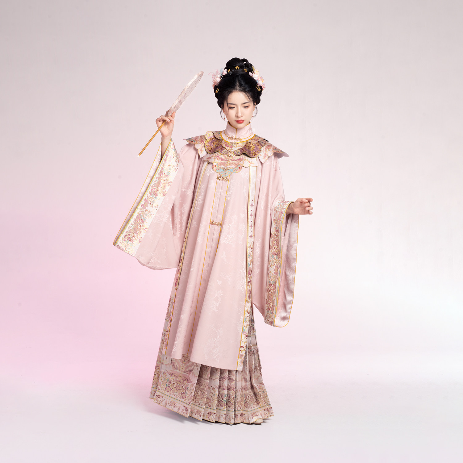 衫 原创凤凰翎羽立领对襟大袖 云肩学士马面裙汉服 金丝粉羽 织造司