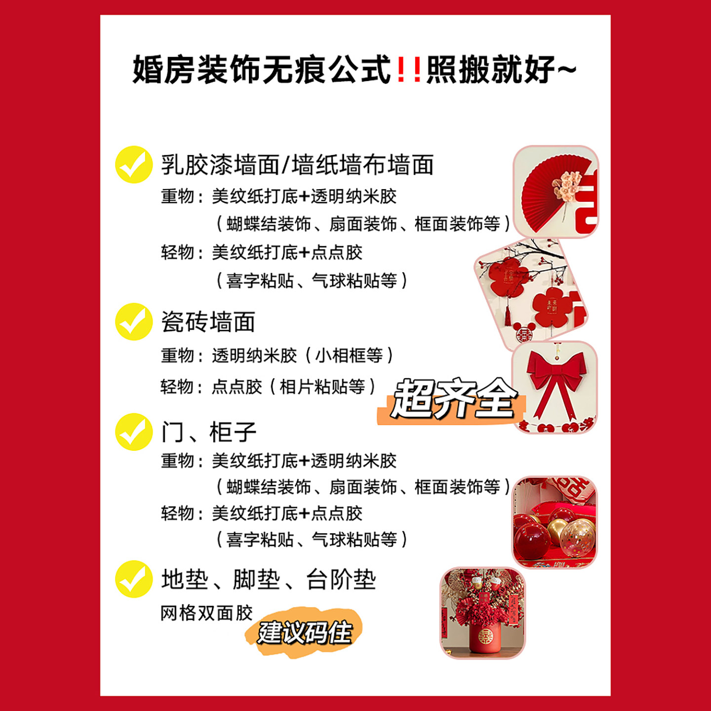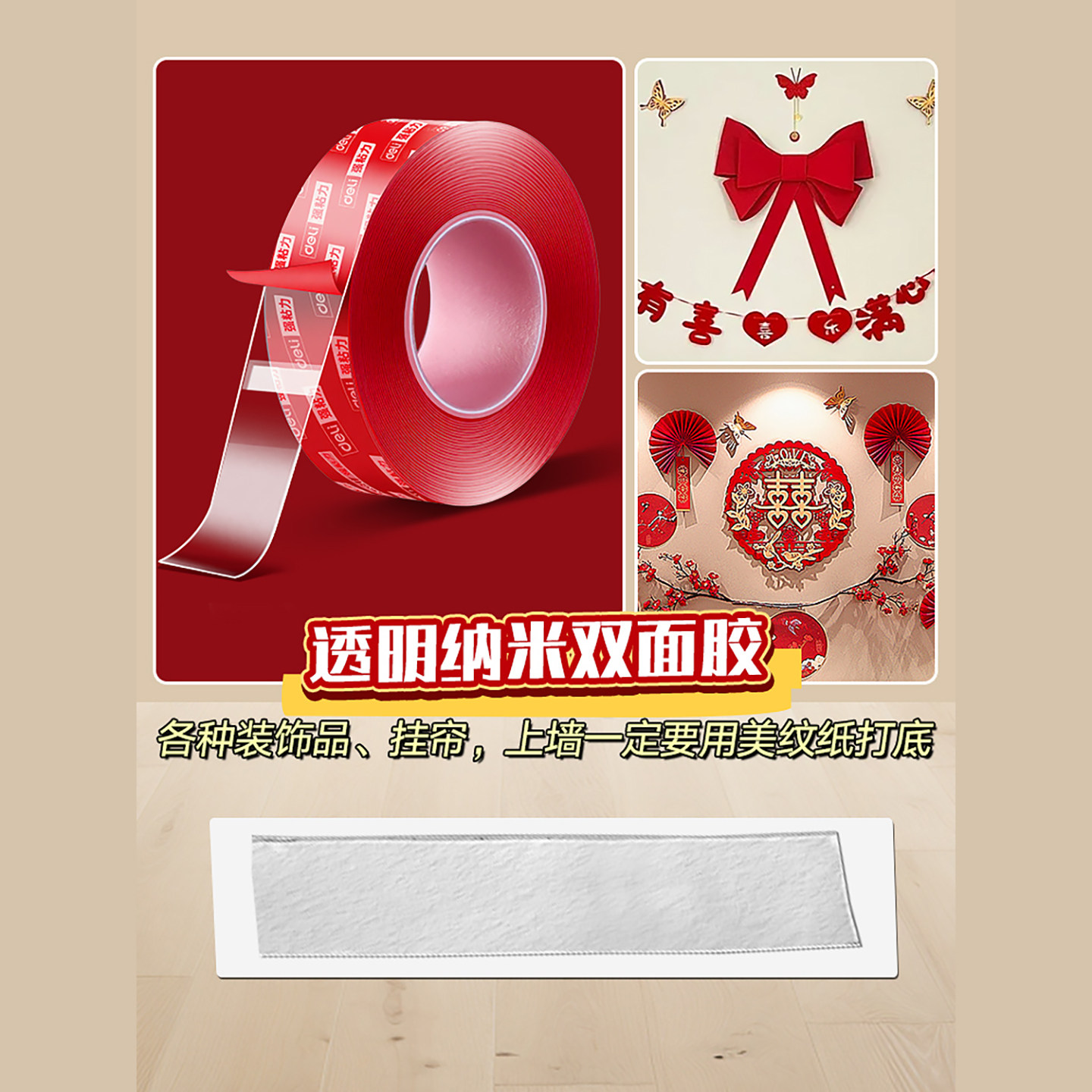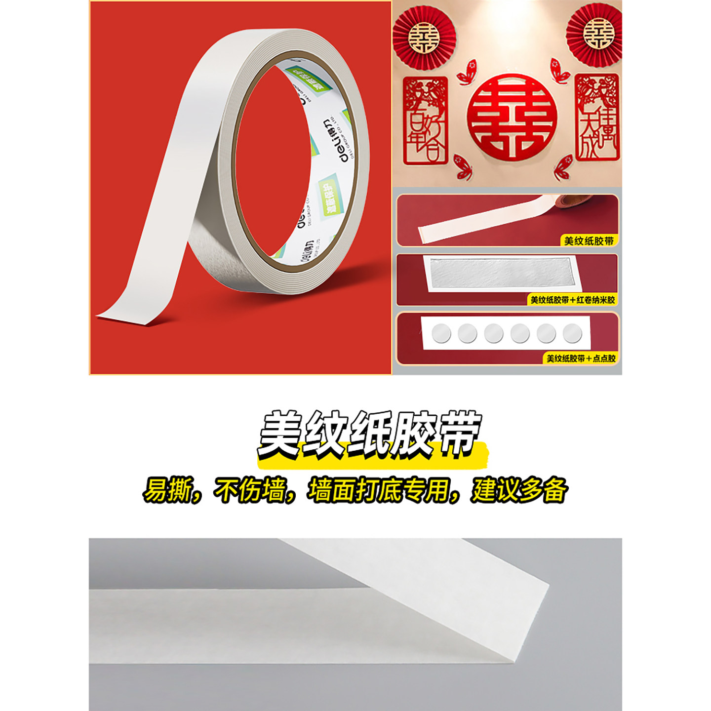 得力婚房布置专用胶美纹纸胶带春联双面胶墙面无痕胶不伤墙结婚装 饰胶贴喜字气球对联纳米双面胶高粘度点点胶