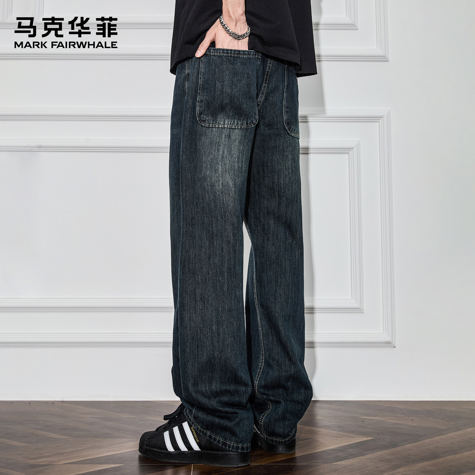 明星同款 牛仔裤 IMXS腰带印花美式 松弛感镰刀裤 男女 复古弯刀裤