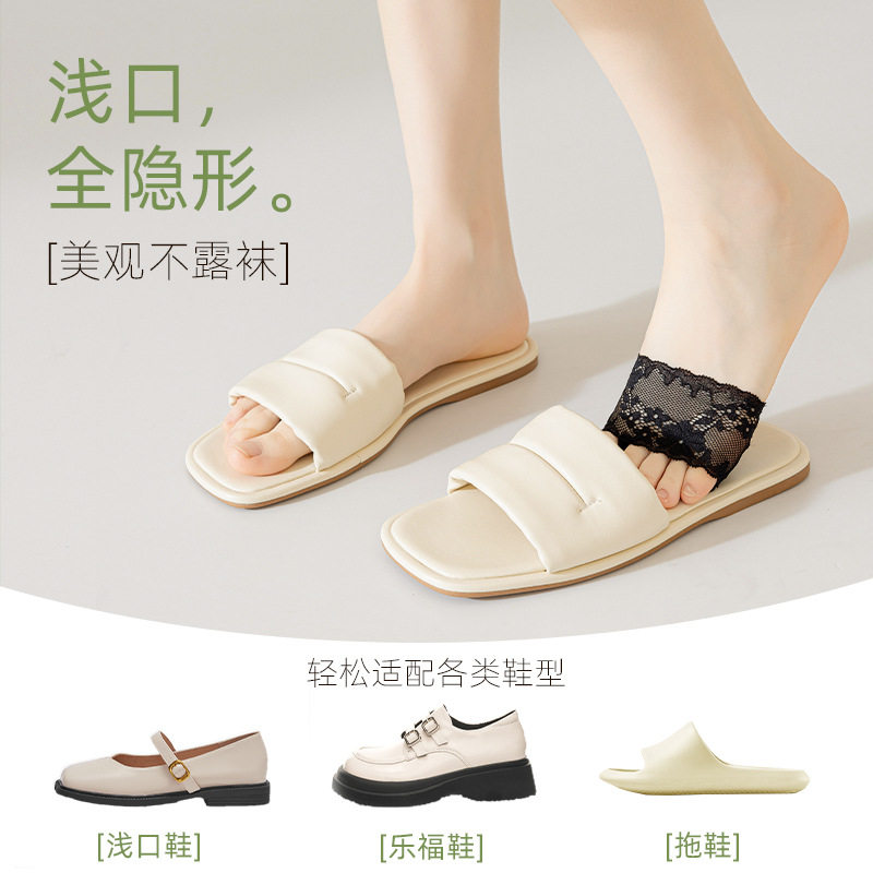 隐形船袜 袜子女防滑五指气垫前脚掌袜高跟鞋 蕾丝半掌丝袜夏季 薄款