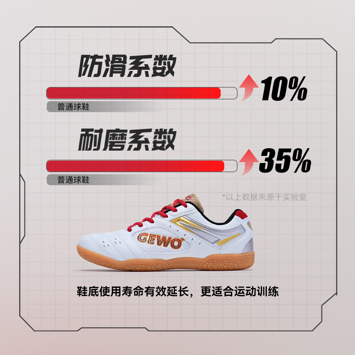 男女 乒乓球专用运动鞋 牛筋底防滑 GEWO杰沃飞跃专业乒乓球鞋 博乒