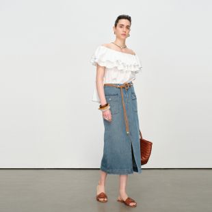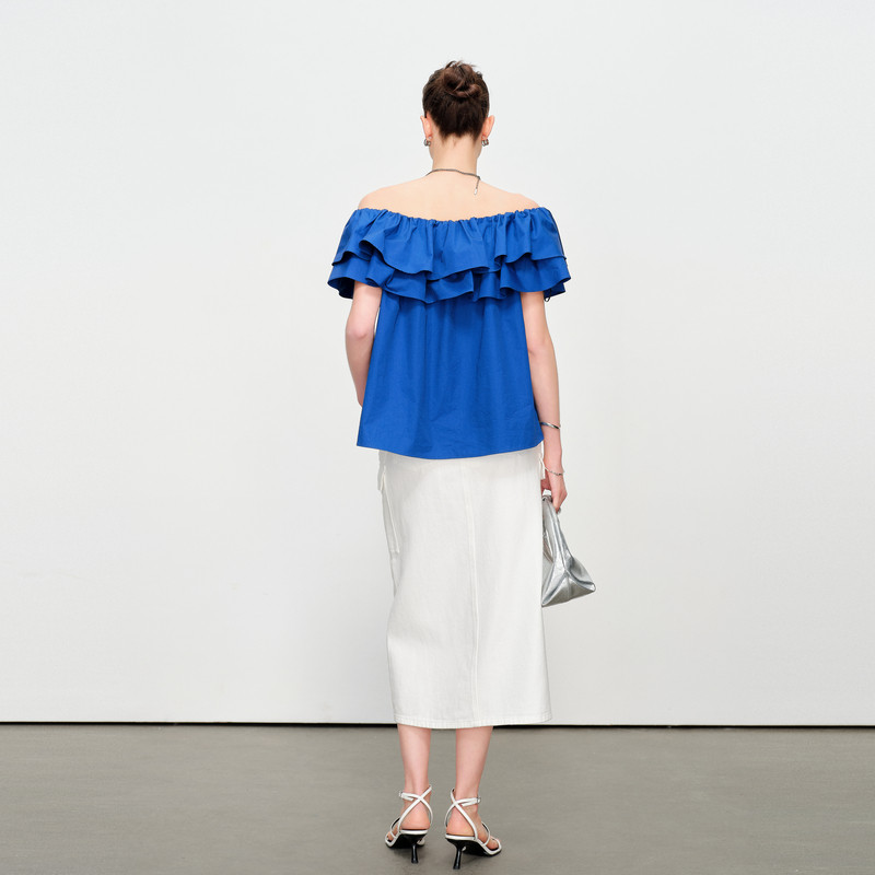 云白色一字领套头上衣1242H28SX4 克莱茵蓝 婉甸2025夏季 新品