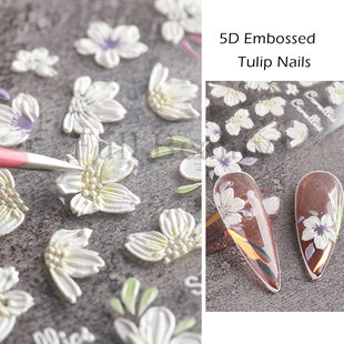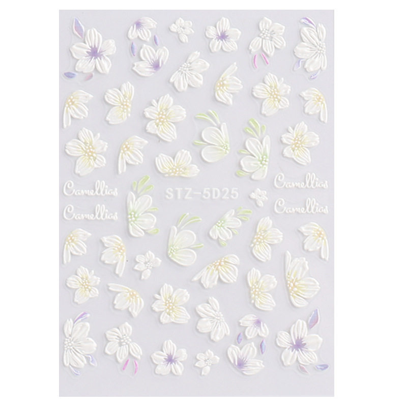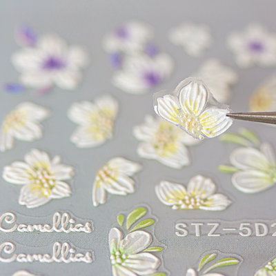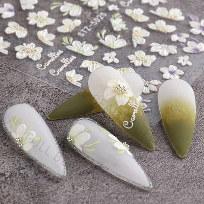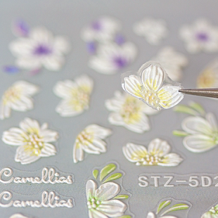 美甲浮雕贴纸山茶花郁金香5D立体黑白色小蝴蝶指甲装 饰品网红爆款