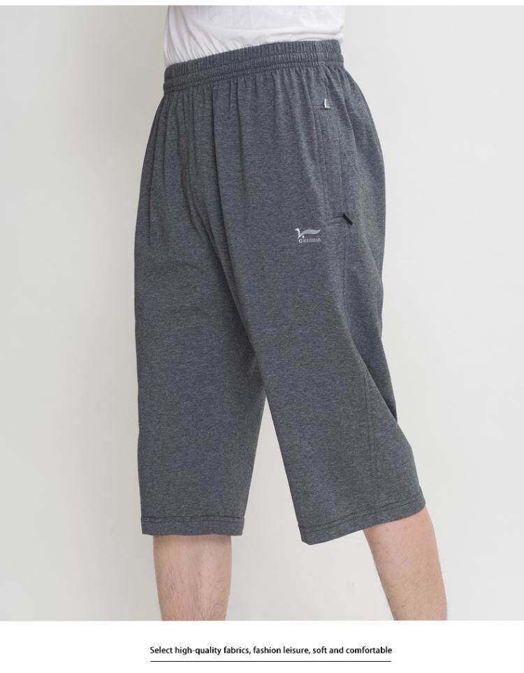 男宽松中老年爸爸松紧高腰休闲7分中裤 七分运动短裤 纯棉男士 夏季
