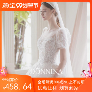 显瘦孕妇小个子新娘纱轻奢 拖尾主婚纱刺绣短袖 泡泡袖 婚纱2025新款