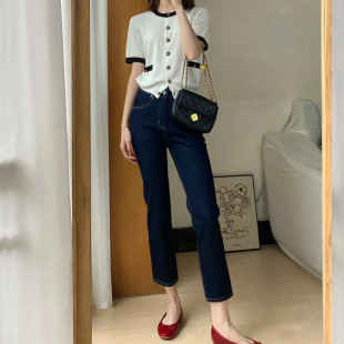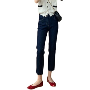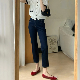 女 九分150cm小个子直筒牛仔裤 深蓝八分烟管裤 女显瘦高腰紧身窄版
