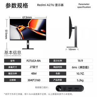 小米Redmi27英寸 红米4K竖屏电脑显示器IPS超高清设计师A27U2026