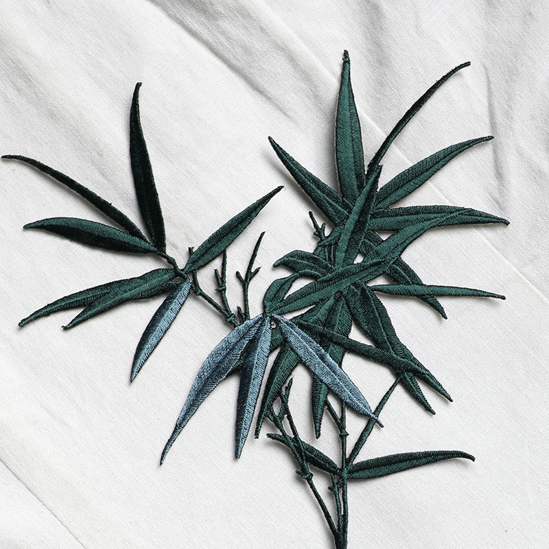 竹子中国风大号刺绣布贴团队服装 饰背胶可熨烫 DIY创意定制绣片装