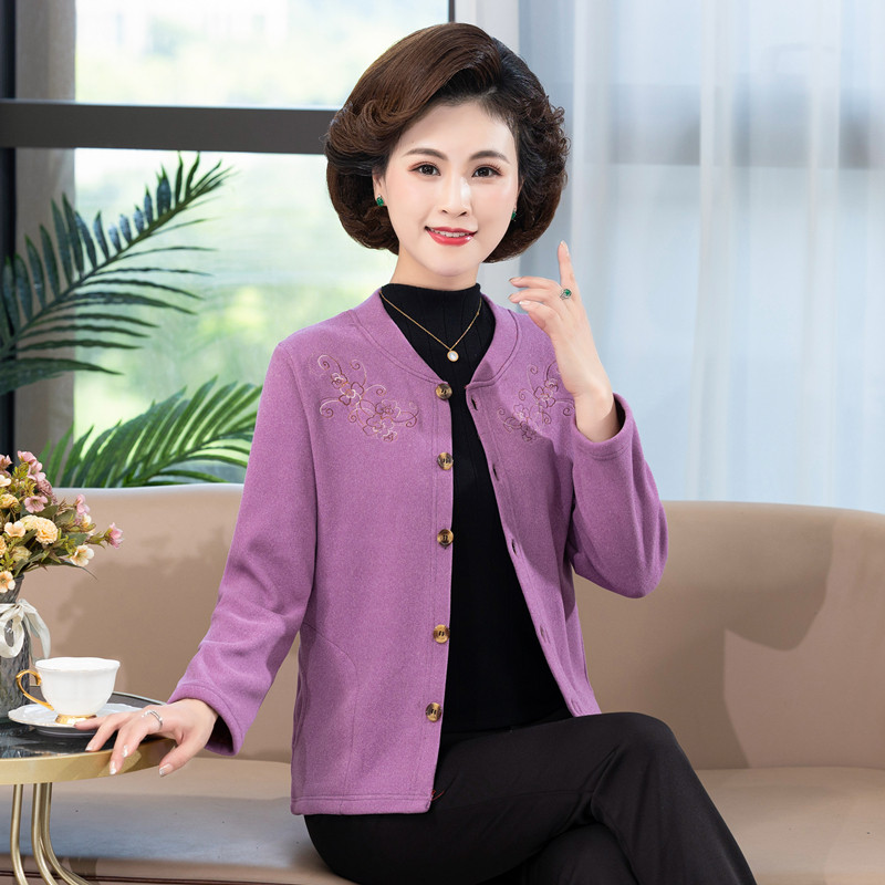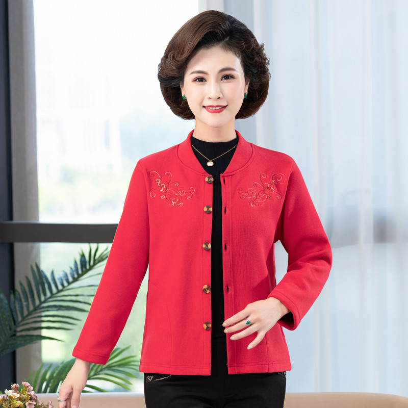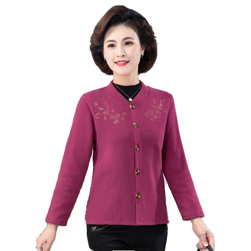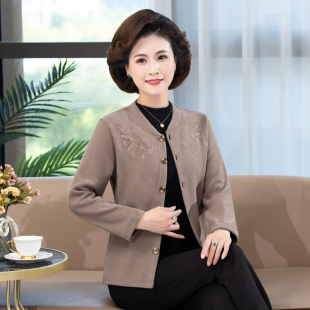 开衫 中年女妈妈装 短外套老年人保暖长袖 德绒加绒薄款 秋冬2022新款