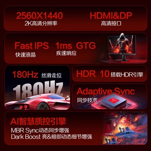 AOC 24英寸2K180Hz电竞显示器Q24G4E游戏IPS小金刚电脑165屏幕