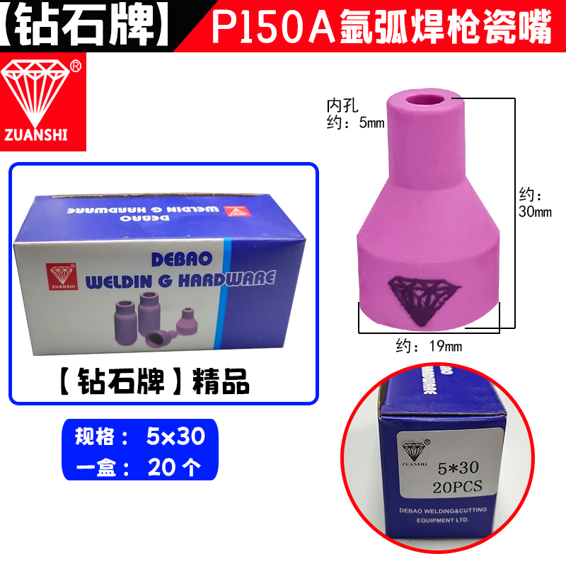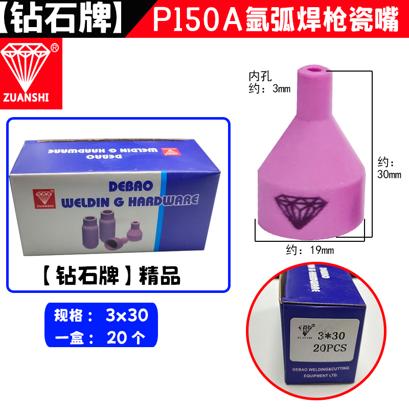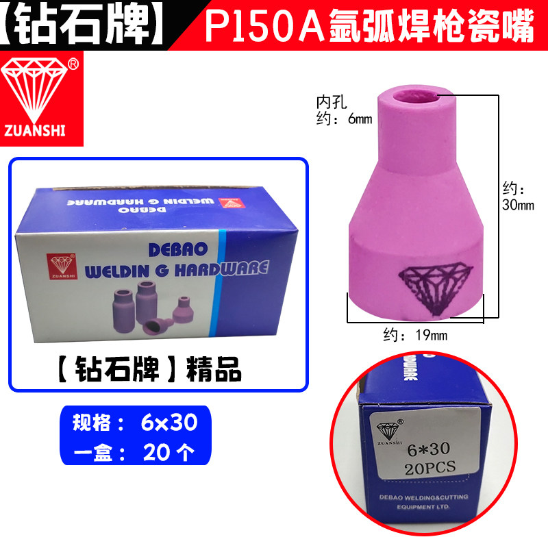 钻石牌氩弧焊瓷嘴150A枪系列6X30瓷嘴5 30瓷咀4x30瓦嘴3x30内外角