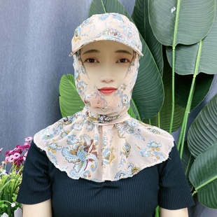 防晒帽子潮夏季 出游户外骑车太阳帽遮脸防紫外线披肩隔离罩防护帽