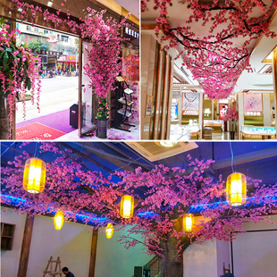 仿真桃花枝假樱花腊梅花塑料花干花娟花假树造景落地摆件室内装 饰