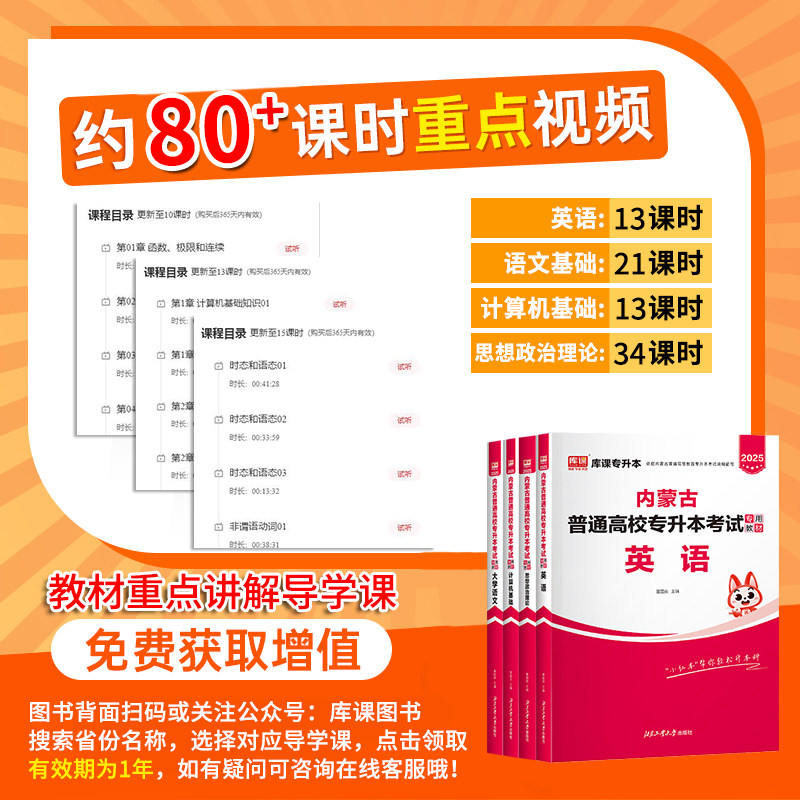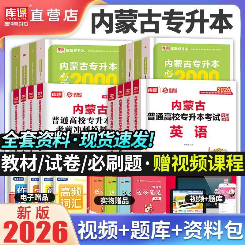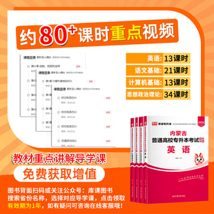 库课文化2026内蒙古专升本复习资料考试教材真题试卷必刷2000题库视频网课英语词汇大学语文计算机思想政治高等数学文史基础医学
