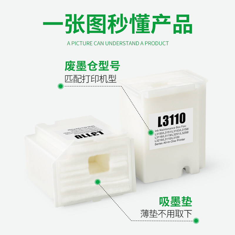 L3219维护箱废墨仓棉收集器收集瓶清零废墨盒海绵吸墨垫 适用epson爱普生L3251废墨垫打印机收集垫 顺丰