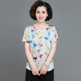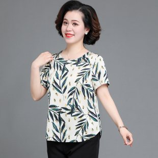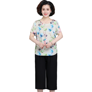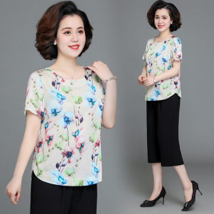 运动服休闲套装 雪纺小衫 女中年洋气衣服一整套 短袖 中老年妈妈夏季