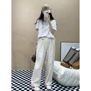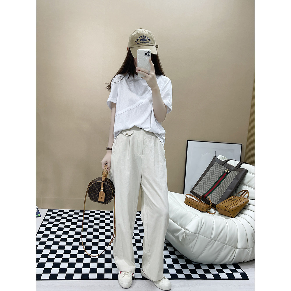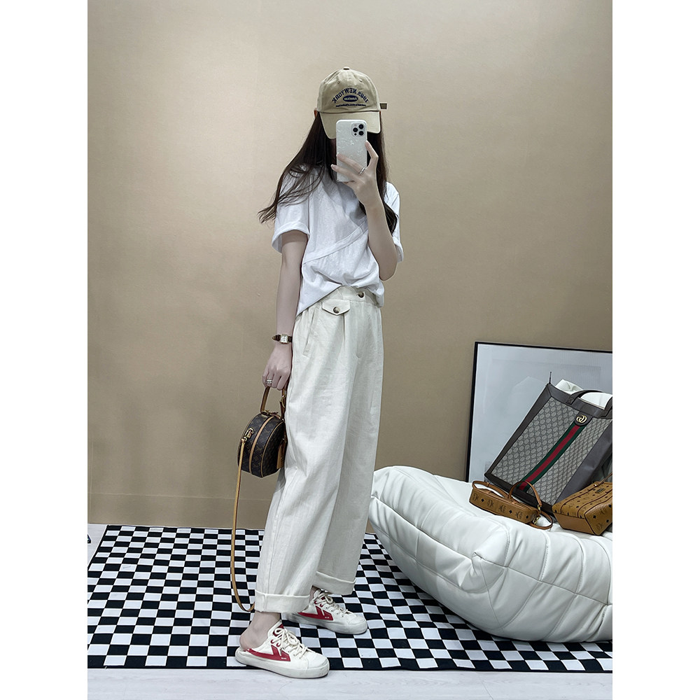 直筒长裤 superxue 高腰显瘦百搭宽松休闲裤 子女夏新款 杏色裤