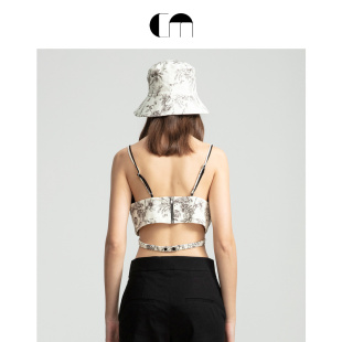 印花吊带背心 拼接短款 COMME MOI吕燕设计师早春女装