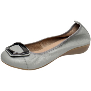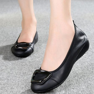 孕妇工作真皮女单鞋 头层软牛皮妈妈鞋 舒适软底浅口圆头平底豆豆鞋