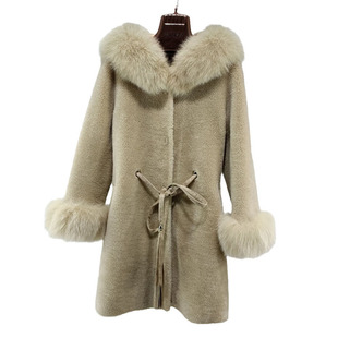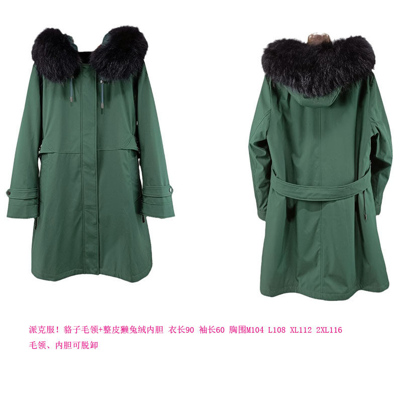 中长款 狐狸毛牛仔派克服冬季 獭兔毛皮草毛领外套 韩女派克 渔小平