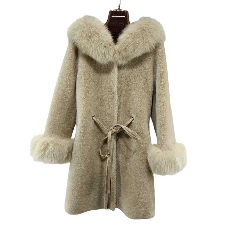 浅布调黑色羊羔毛环保皮草女冬季 高级感毛毛外套 加厚宽松中长款