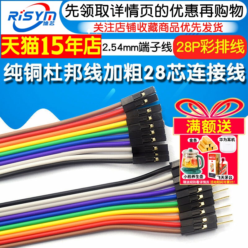 纯铜杜邦线加粗28芯母对母公对母电子线彩排线2.54端子连接线优质
