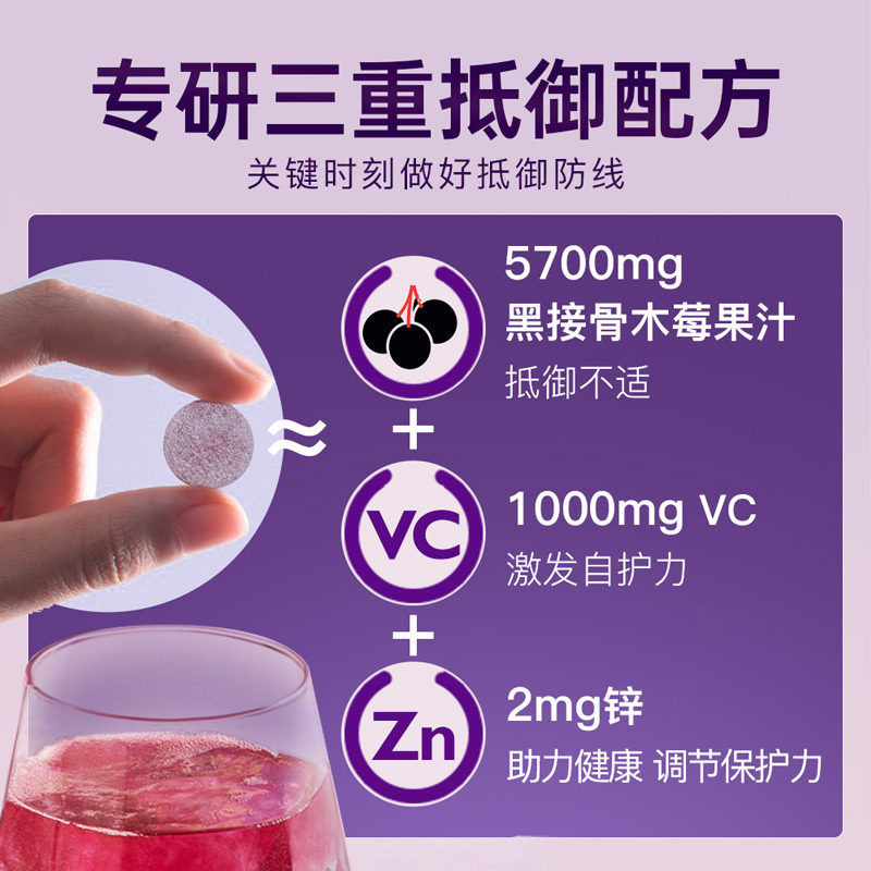 善倍康Sambucol黑接骨木莓维生素C自护力VC泡腾片15片 自营