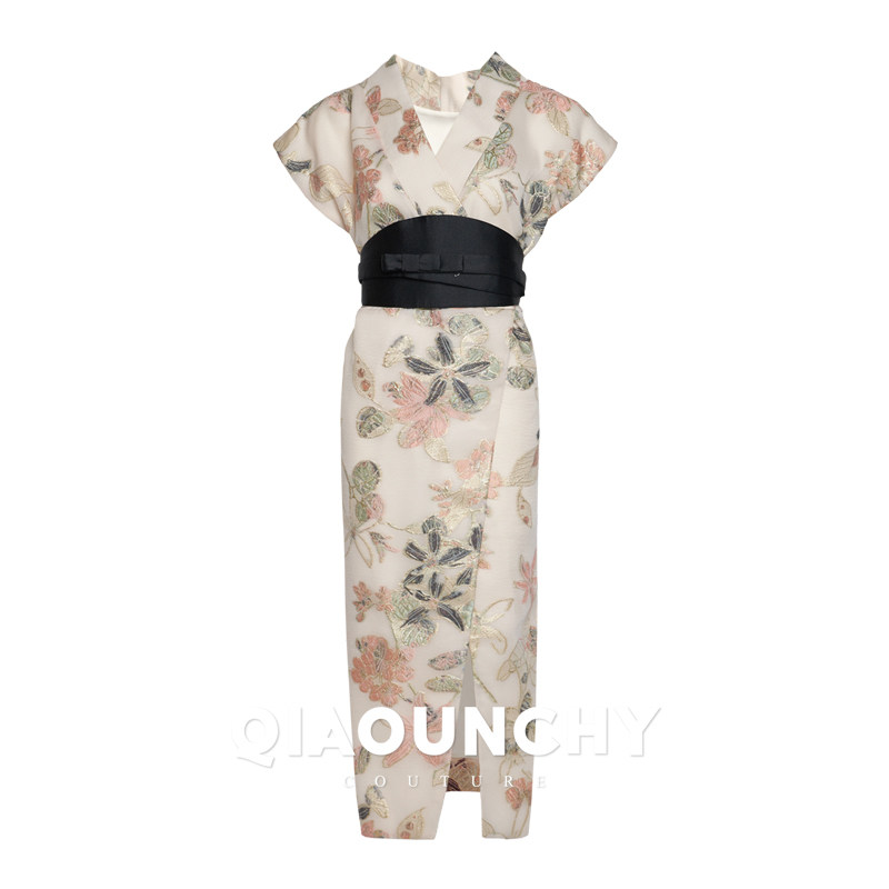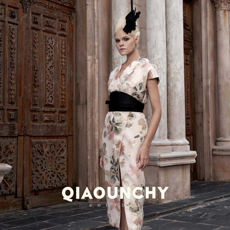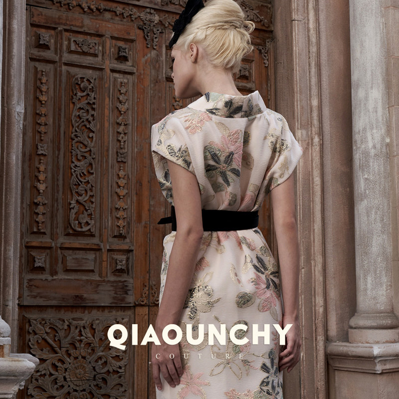 意大利进口提花料 连衣裙 QIAOUNCHY俏云曦|国风高定交叉领腰封式