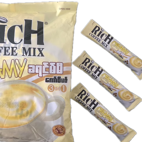 缅甸特产泰国缅甸rich咖啡3合1速溶黄色奶香味540克 30杯清真食品