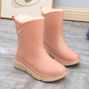 新款 加厚胶鞋 雨鞋 冬天一体绒加绒厨房棉雨靴防水防滑水鞋 女款 冬季