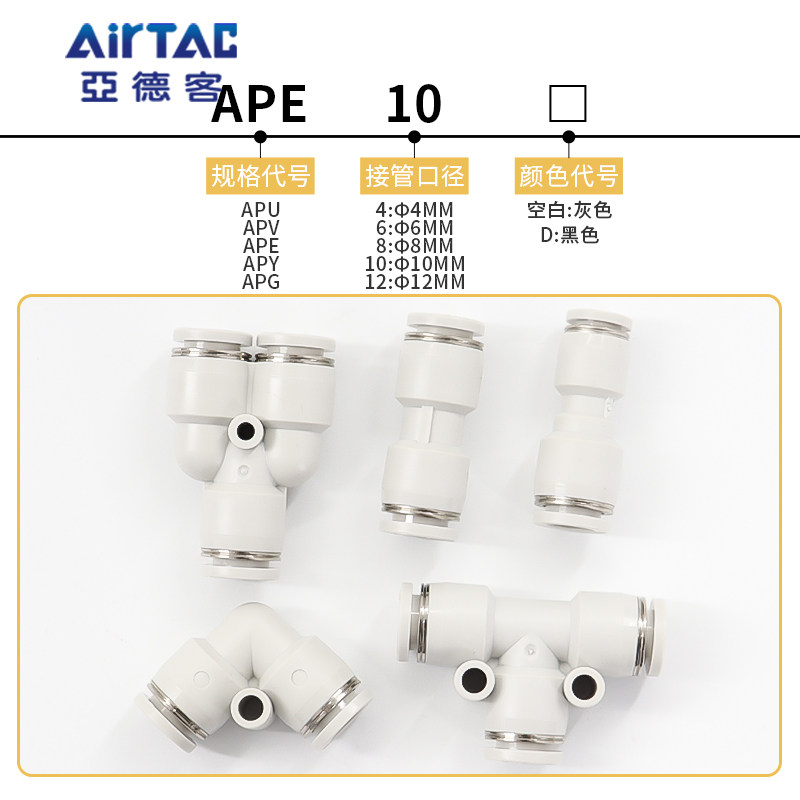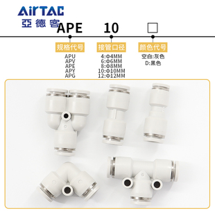 APE变径APY三通气管快插4 亚德客气动快速接头APU直通APG