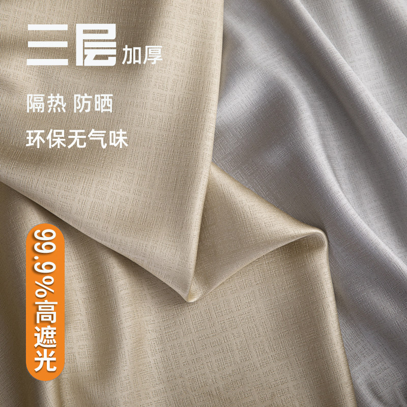 遮光100新款 加厚窗帘挡风隔热现代简约客厅卧室保暖纯色挂钩款