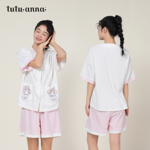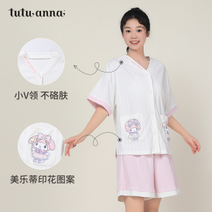 两件套装 tutuanna睡衣女夏款 上衣短裤 针织美乐蒂印花短袖 家居服