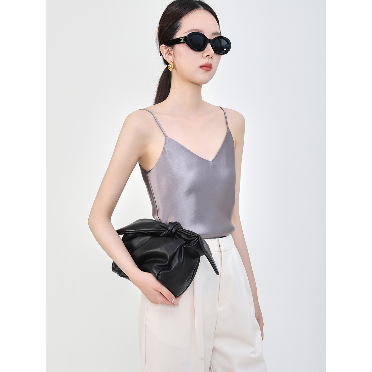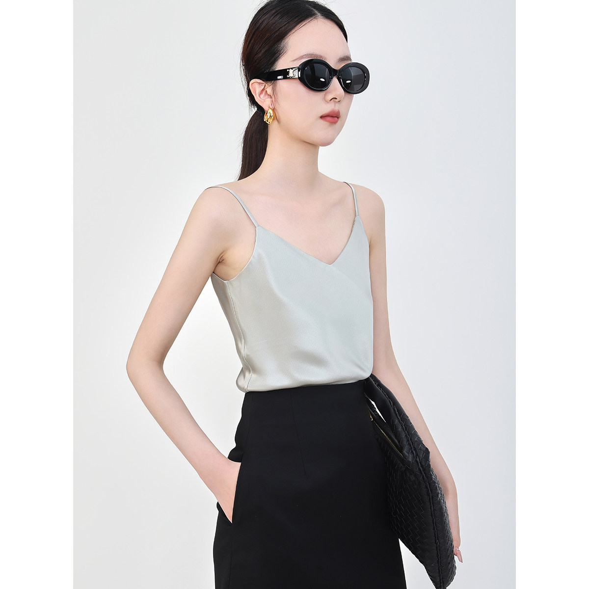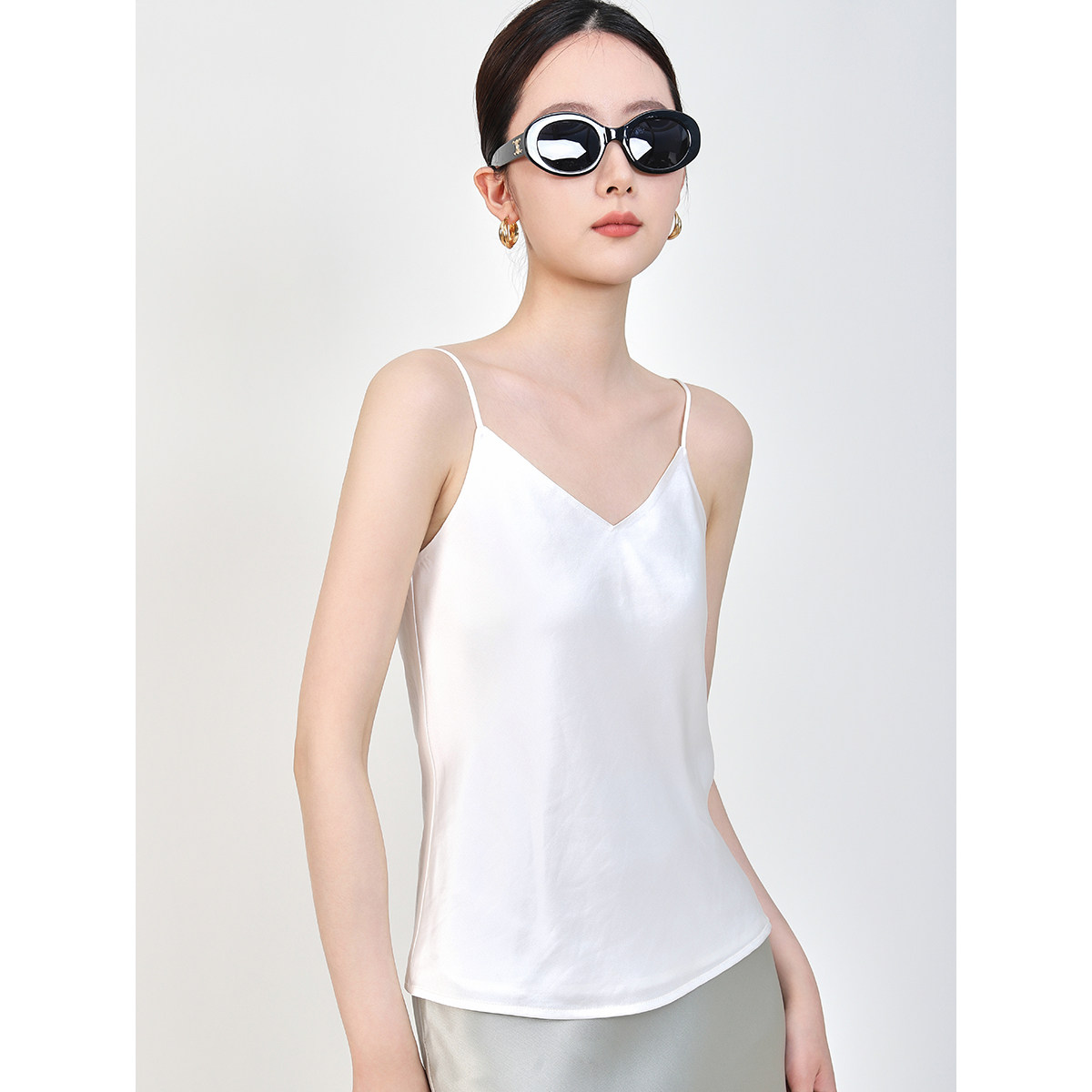 上衣外穿 醋酸吊带背心女内搭V领打底真丝吊带衫 Mooelpom新款 无袖
