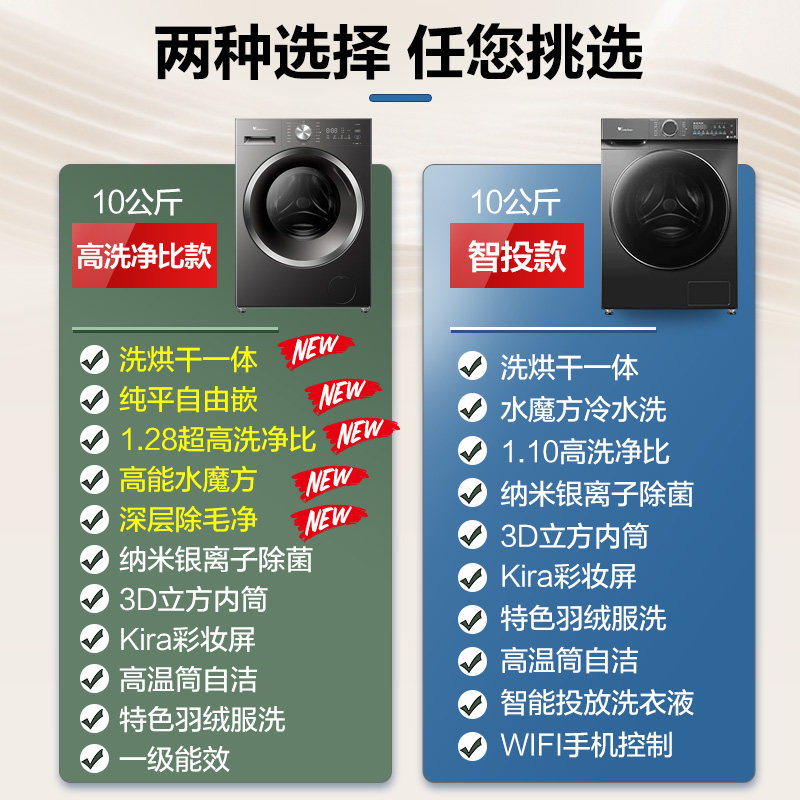 美 滚筒洗衣机全自动家用12kg10公斤洗脱洗烘一体大容量官方旗舰