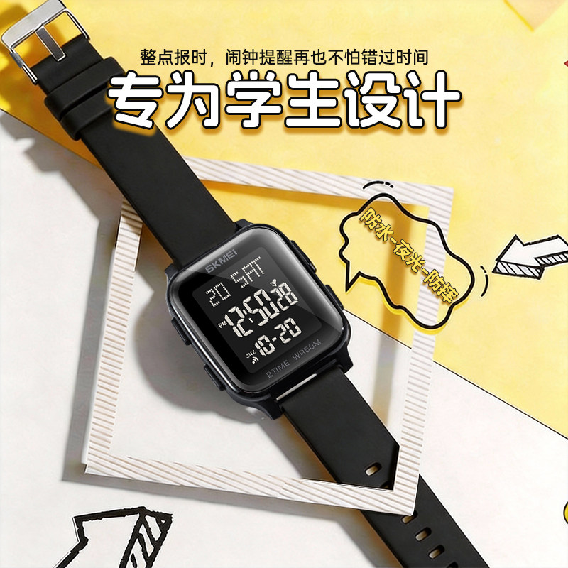 时刻美初高中学生手表儿童青少年运动防水夜光闹钟电子表生日礼物