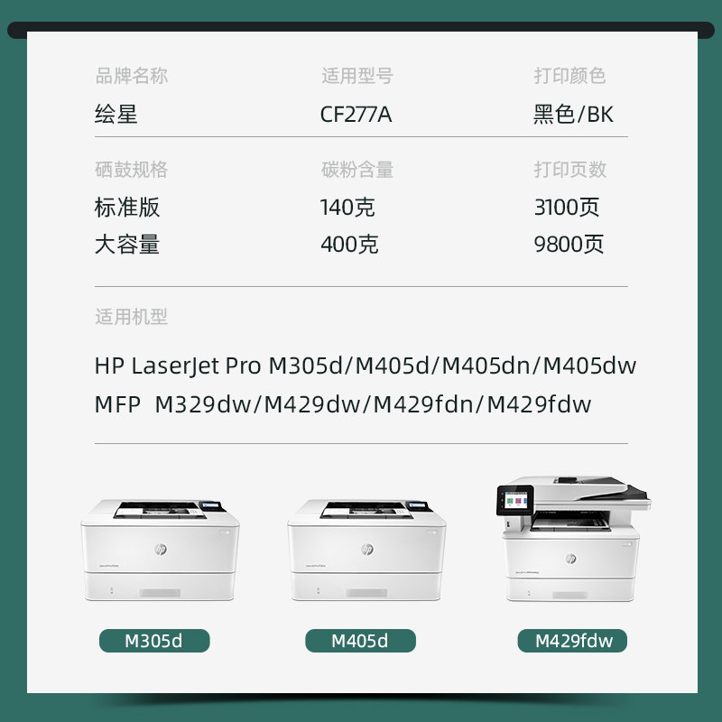 m429d 绘星适用惠普m429fdw硒鼓cf277打印机粉盒329dw 带芯片