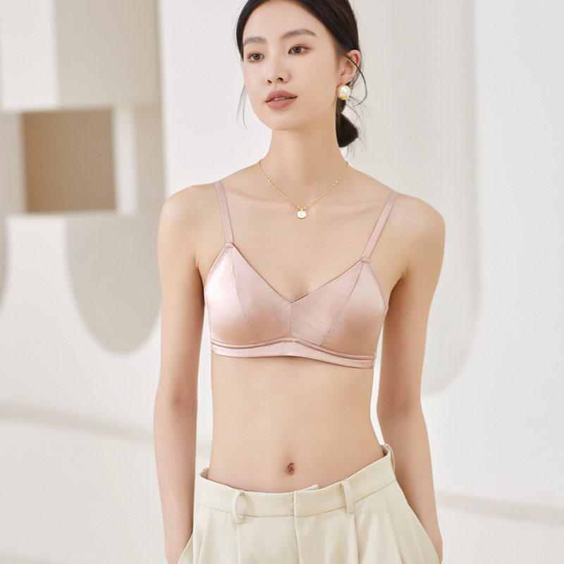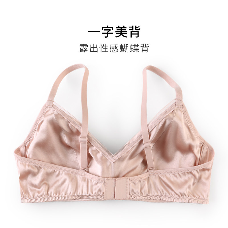 里外桑蚕丝缎面无钢圈内衣女真丝凉感胸罩薄款 三角杯文胸 承托法式
