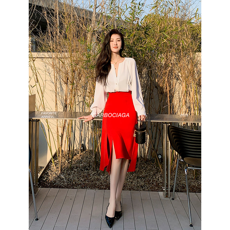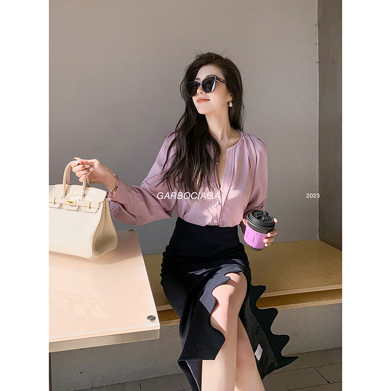 套装 显瘦包臀辣妹长袖 女学院风OL秘书修身 jk制服纯欲收腰白色衬衫