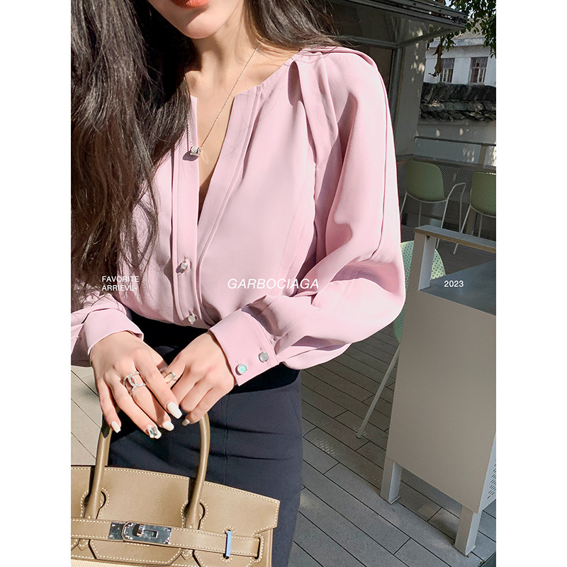 磨毛纯色文艺简约宽松百搭长袖 粉色衬衫 秋季 纯棉2025新款 衬衣 女款