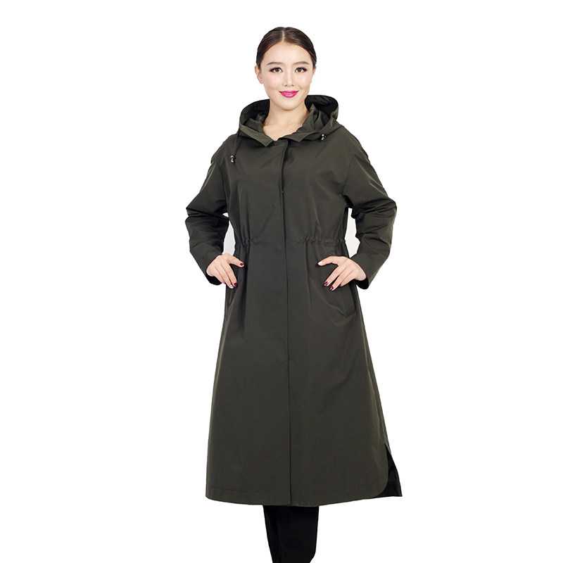 千瑶2024年春秋宽松休闲连帽风衣简约加大码 军绿色防风防雨外套女