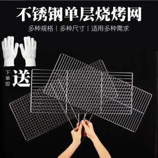 不锈钢单层烧烤网片带把手横竖条长方形26x60烧烤网户外烤肉熏肉