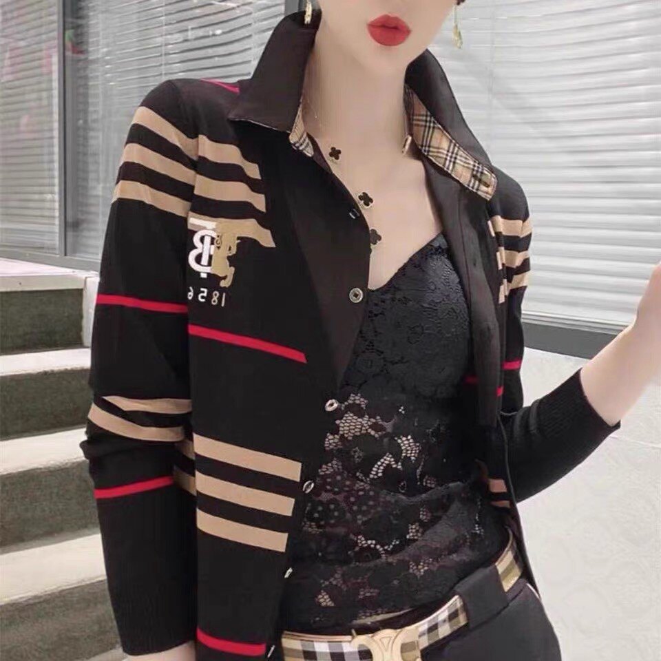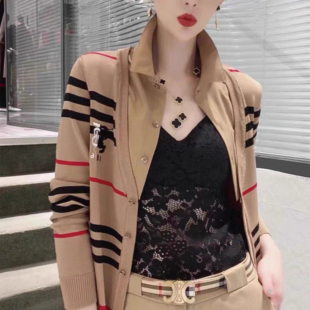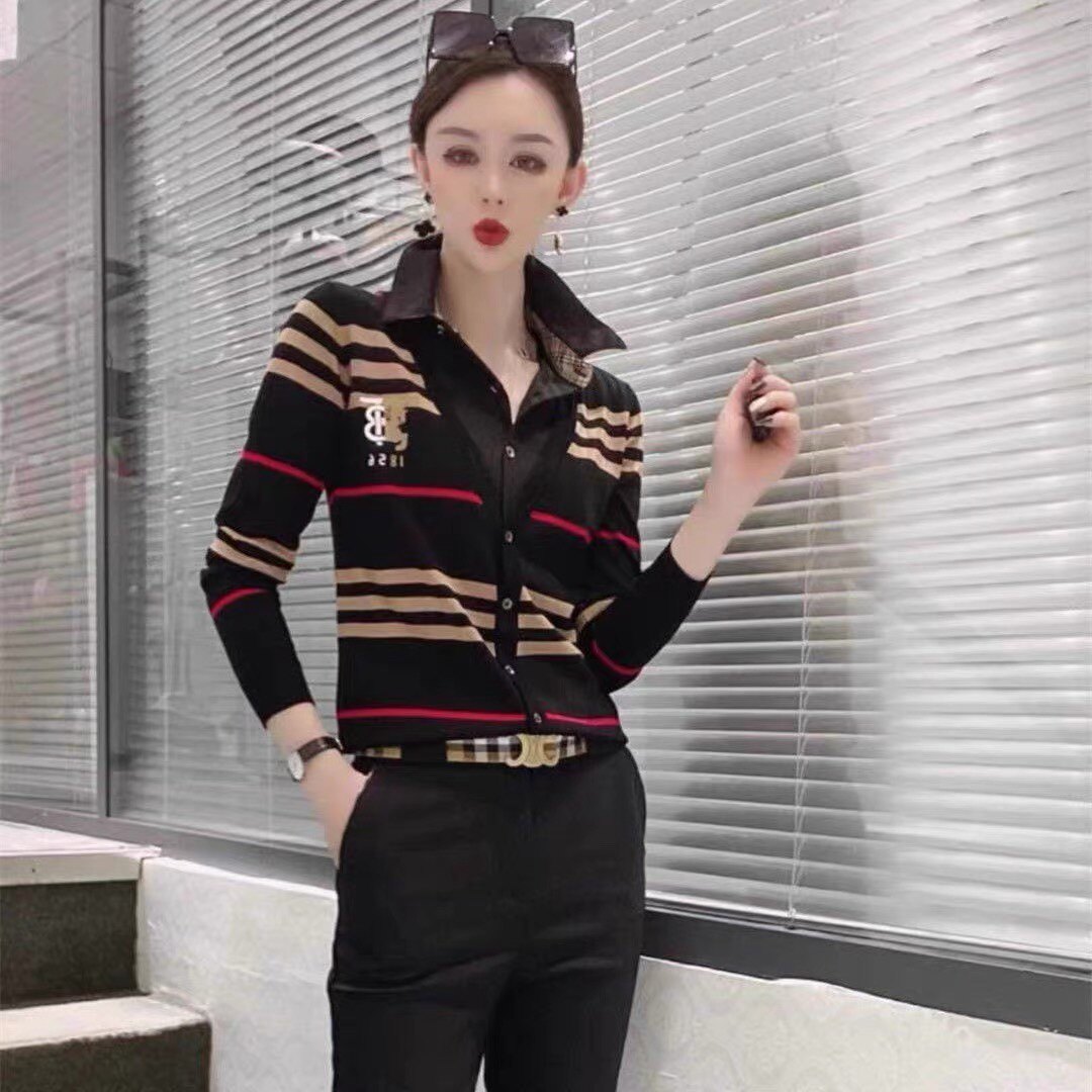 领OL显瘦百搭假两件基础毛衣女装 2022秋季 衬衫 英伦条纹针织衫 新款