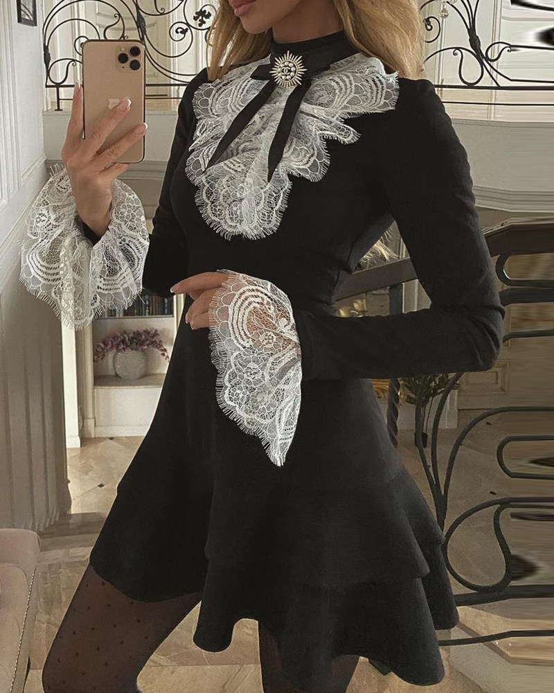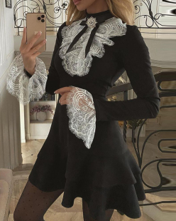 sleeve line Lace 蕾丝拼接长袖 long dress A字连衣裙 splicing
