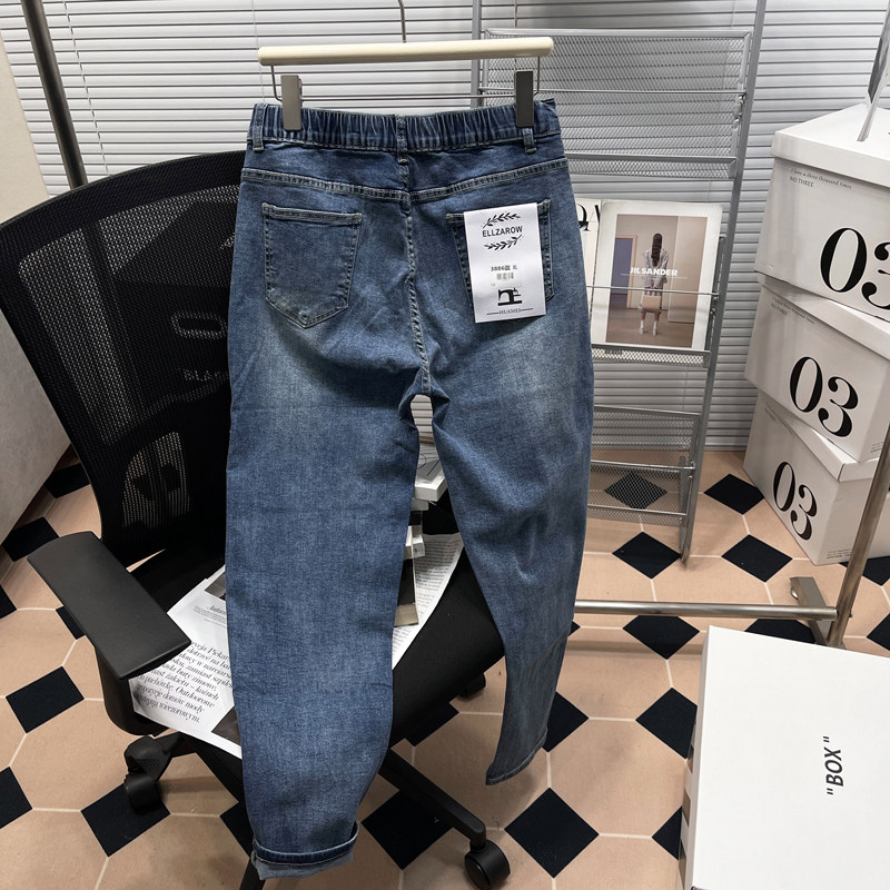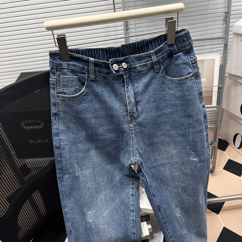 牛仔裤 大码 女胖mm韩版 高腰显瘦弹力小脚九分裤 2023春装 哈伦裤 新款