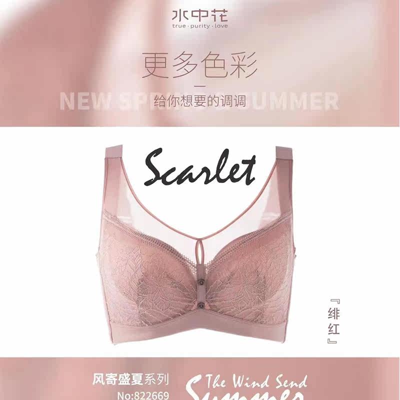 水中花内衣蚕丝莫代尔杯贴合无弹针织面料舒适防凸点加高侧比文胸